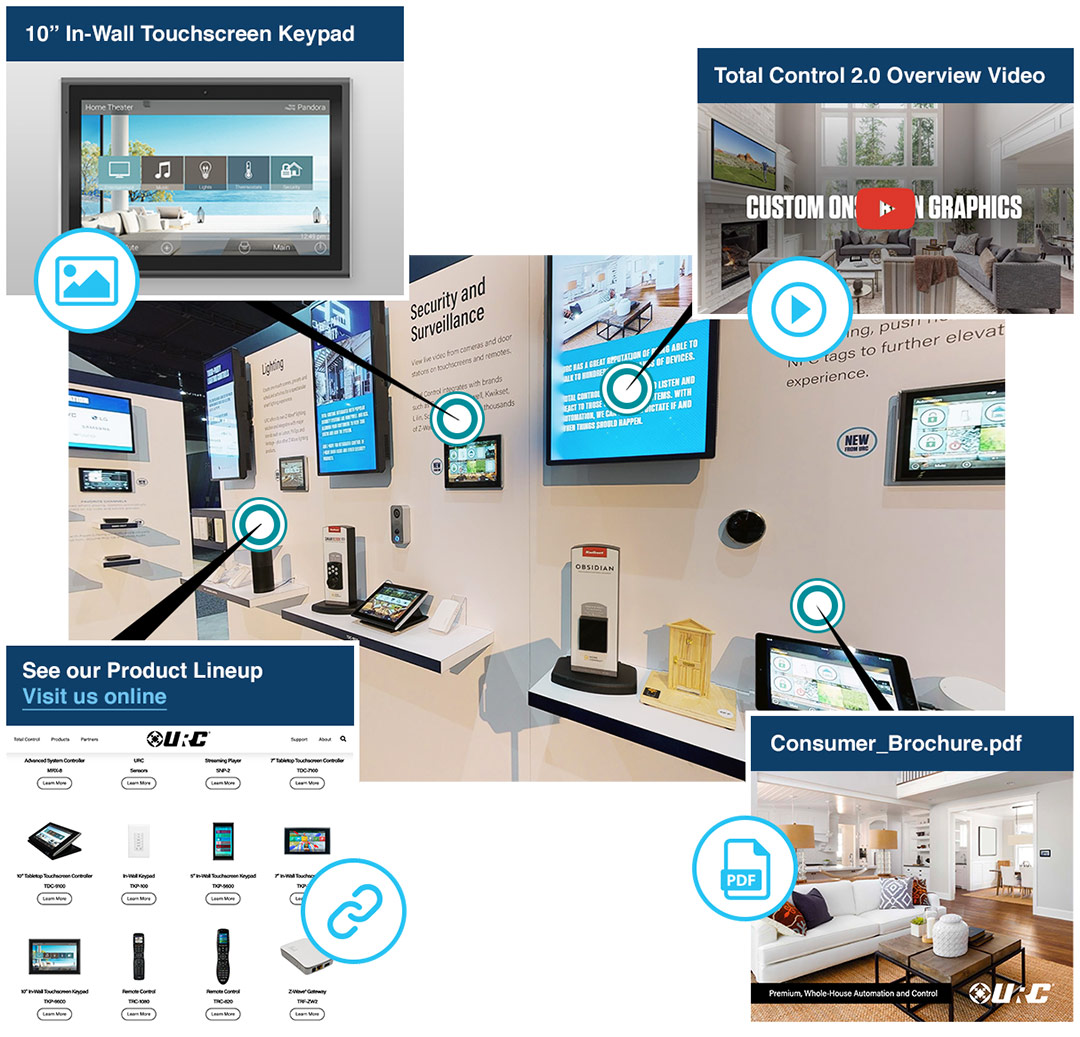 Our interactive virtual tours lets you re-engage those who visited your booth in person, and those unable to attend. Now more than ever, expand your reach beyond the show. There’s never been a better time for an interactive virtual booth experience.Exhibiting is expensive and most trade shows only run a few days. For a fraction of the cost to exhibit, you can provide an interactive booth experience for a year. Informational tags turn your booth into a multimedia marketing hub. Tags are anchored to points in your booth so you can add descriptions. links, photos, PDF’s or videos.Leverage your trade show investment.Having a virtual tour of your trade show booth opens up to a world of possibilities to extend its usage and increase your marketing ROI. Connect with clients and partners that didn’t make it by your booth or the show. Use it for social media marketing, training, PR and to help design your next booth.Market your booth long after the show ends.